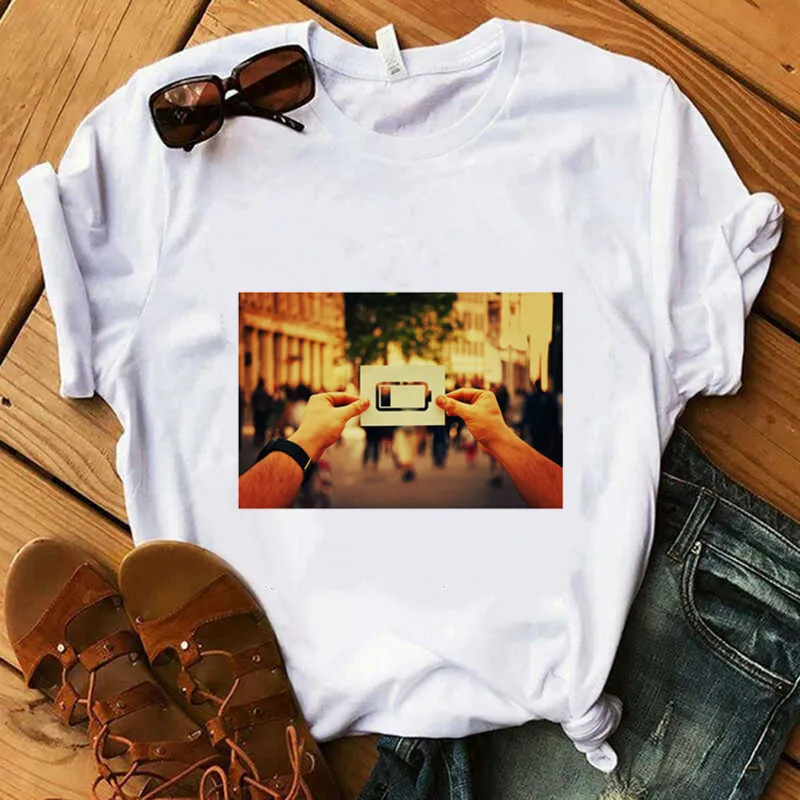 Best Offer New Women's Fashion battery Print Fun Casual Summer Short-sleeved Harajuku Women's T-shirt Tops