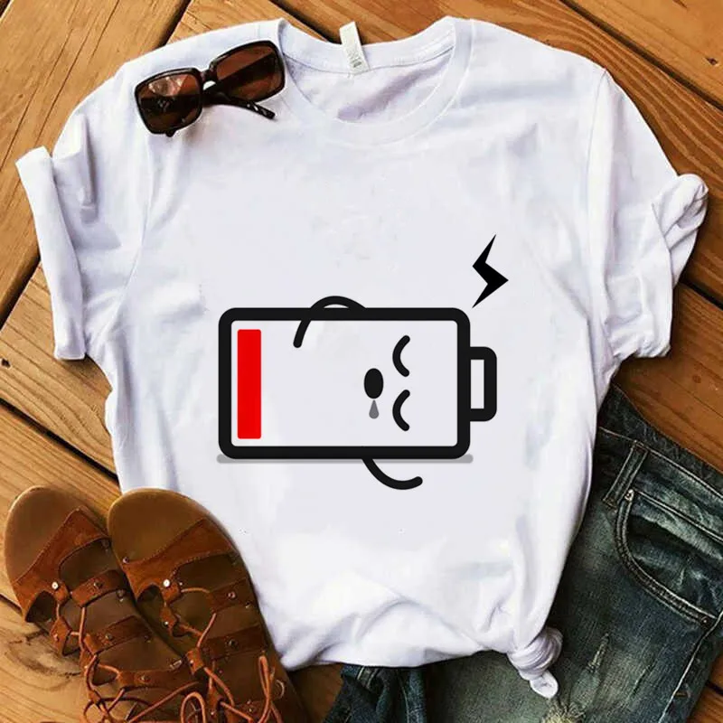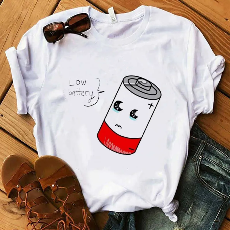 Buy New Women's Fashion battery Print Fun Casual Summer Short-sleeved Harajuku Women's T-shirt Tops